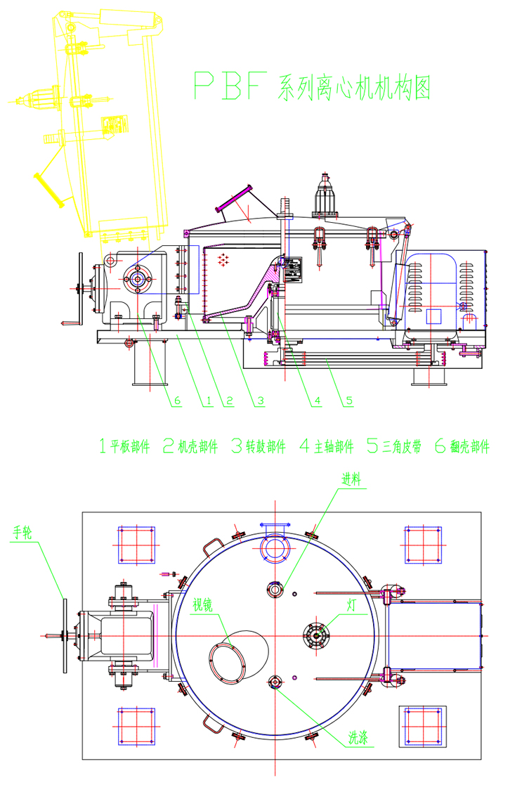3.全翻壳设计:可对安博(中国)外壳与转鼓夹层空间进行彻底清洗,有效清除批次间的交叉污染。上盖设置,进料、水洗、视镜、防爆灯、充氮口。